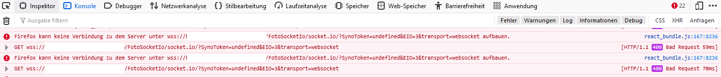 die Verbindung möchte einen WS oder WSS nutzen aber dieser wird nicht aufgebaut.